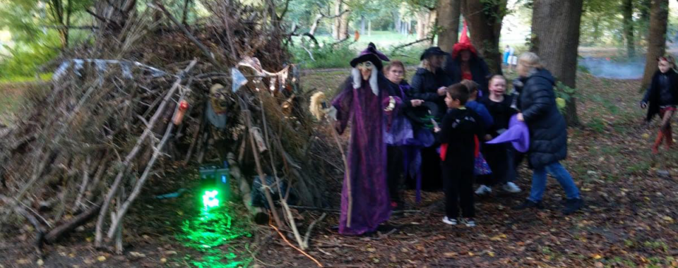 Om 21.00 a 21.30 uur met de tieners door het spookhuis en bos en wordt het really scary, dus de kleintjes echt naar huis!!